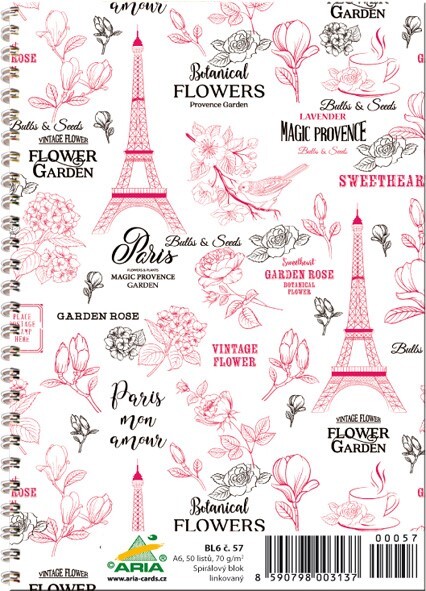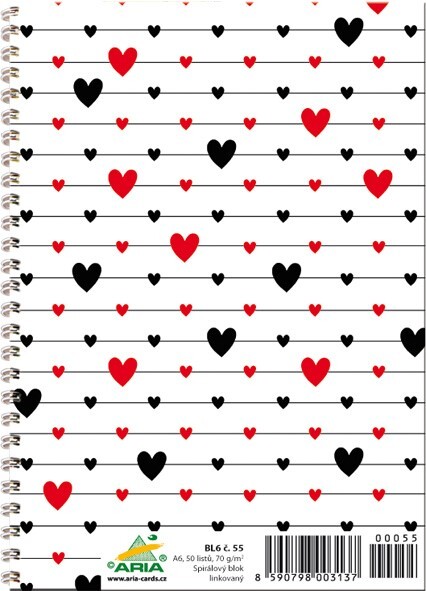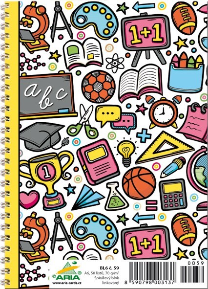 Blok A6, 50 listů spirála vlevo, mix motivů.