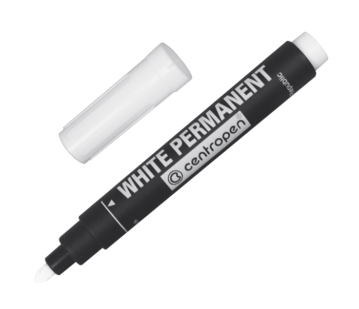 Univerzální permanentní značkovač určený pro hobby a průmysl. Bílý světlostálý inkoust na vodní bázi píše na povrchy většiny materiálů. Po dokonalém zaschnutí odolá vodě, otěru a povětrnostním vlivům. Skladovat ve vodorovné poloze. Ventilační chránítko, po použití uzavřít. Barva: bílá Šíře stopy: 2,5mm Válcový hrot