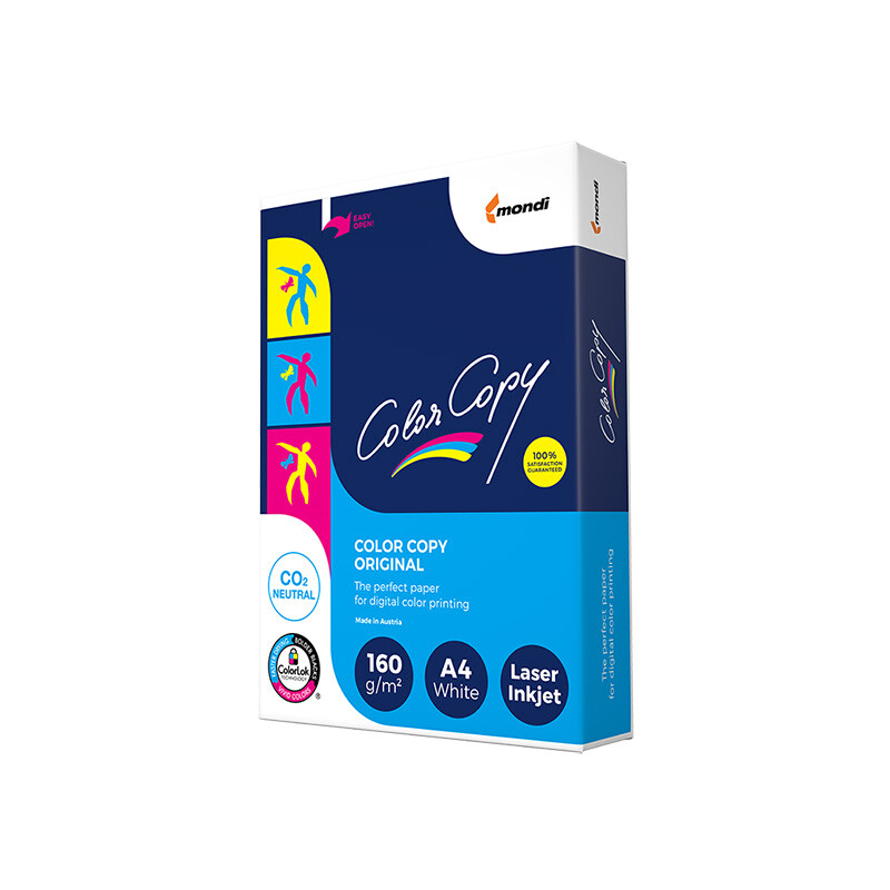 Speciální, bílý, satinovaný papír určen především pro použití v barevných kopírovacích strojích a laserových tiskárnách. Osvědčený papír pro barevný tisk. CO2 neutrální. Formát A4, 160 g/m2, balení 250 listů.