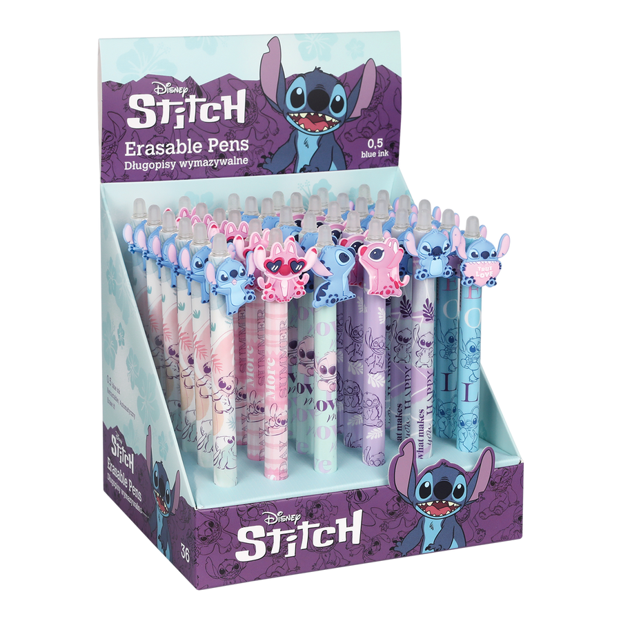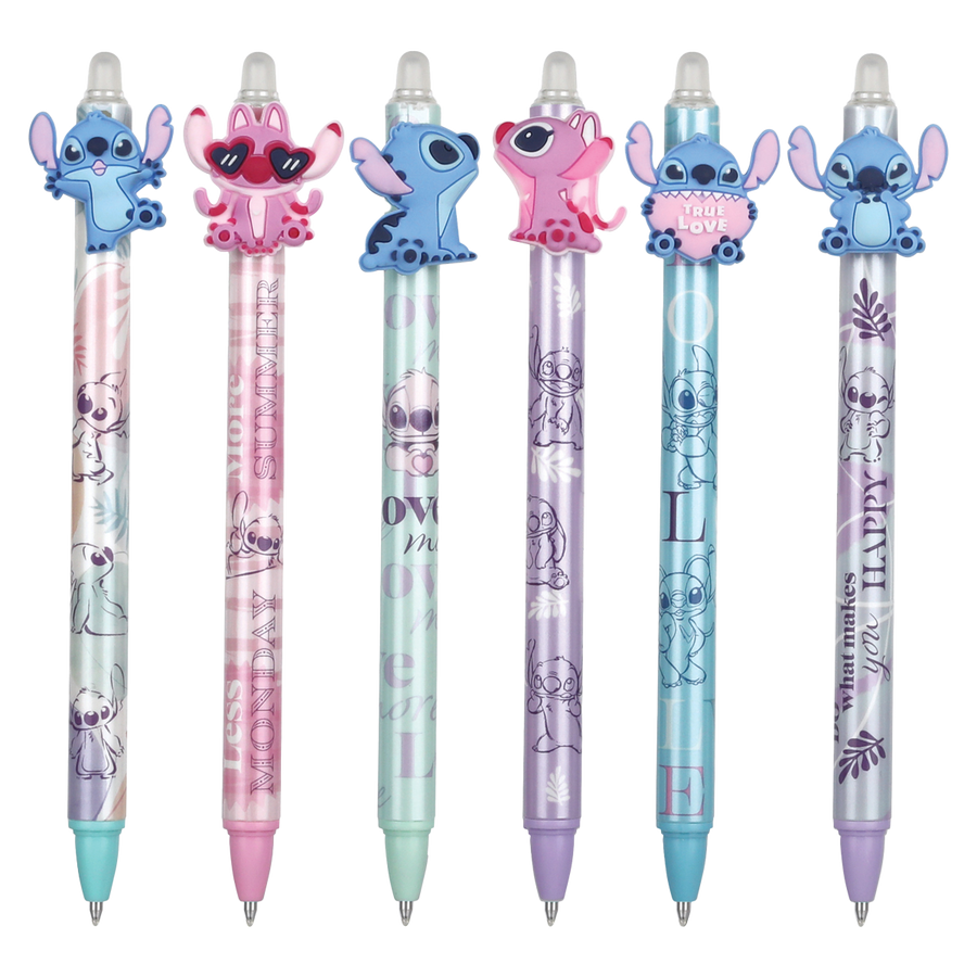 Praktická gumovatelná pera v pastelových barvách s veselými motivy mimozemského Stitche. Kvalitní inkoust lze v případě potřeby jednoduše vygumovat a přepsat.
