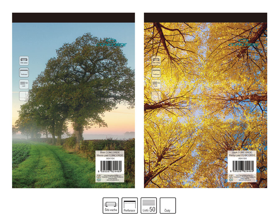 Šitý blok s perforací, bílý papír, atraktivní design, formát A5, 50 listů.