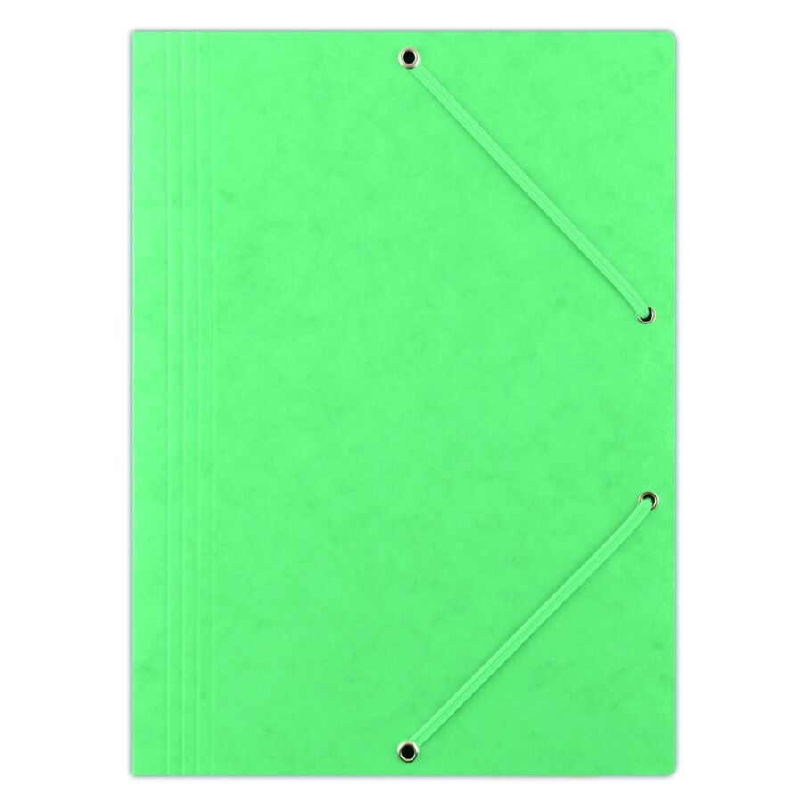 Desky na dokumenty formátu A4 vyrobené z kvalitního prešpánu. Praktická fixace obsahu gumičkou přes rohy v barvě desek. Materiál: povoskovaný prešpán (390 g/m²). Tři vnitřní klopy pro bezpečný přenos vloženého obsahu. Rozměr: 235x319 mm.