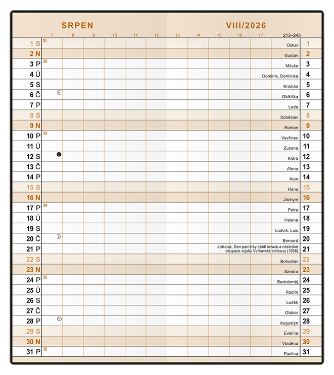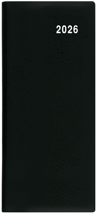 Jednoduchý a praktický měsíční diář vyrobený z jemného hladkého materiálu s polomatným povrchem černé barvy