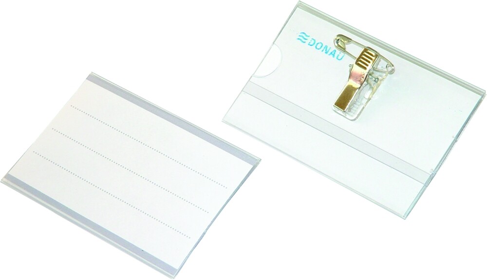 Identifikační jmenovka s kombinovaným úchytem a opatřena ozubeným klipem. Ideální pro vizitky o rozměrech až 88x54 mm. Výměnný štítek přiložen.