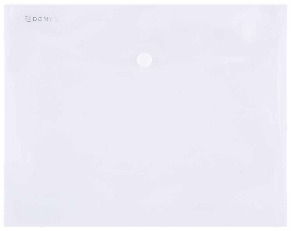 Praktické transparentní pouzdro z ekologicky šetrného polypropylenu (180 μm). Klopa je opatřena odolným drukem. Hrany obálky jsou svařované. Výřez na okraji pro snadnější manipulaci s vloženými dokumenty. Rozměr: 240x186 mm.
