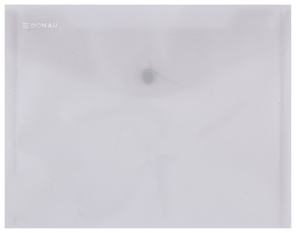 Praktické transparentní pouzdro z ekologicky šetrného polypropylenu (180 μm). Klopa je opatřena odolným drukem. Hrany obálky jsou svařované. Výřez na okraji pro snadnější manipulaci s vloženými dokumenty. Rozměr: 240x186 mm.