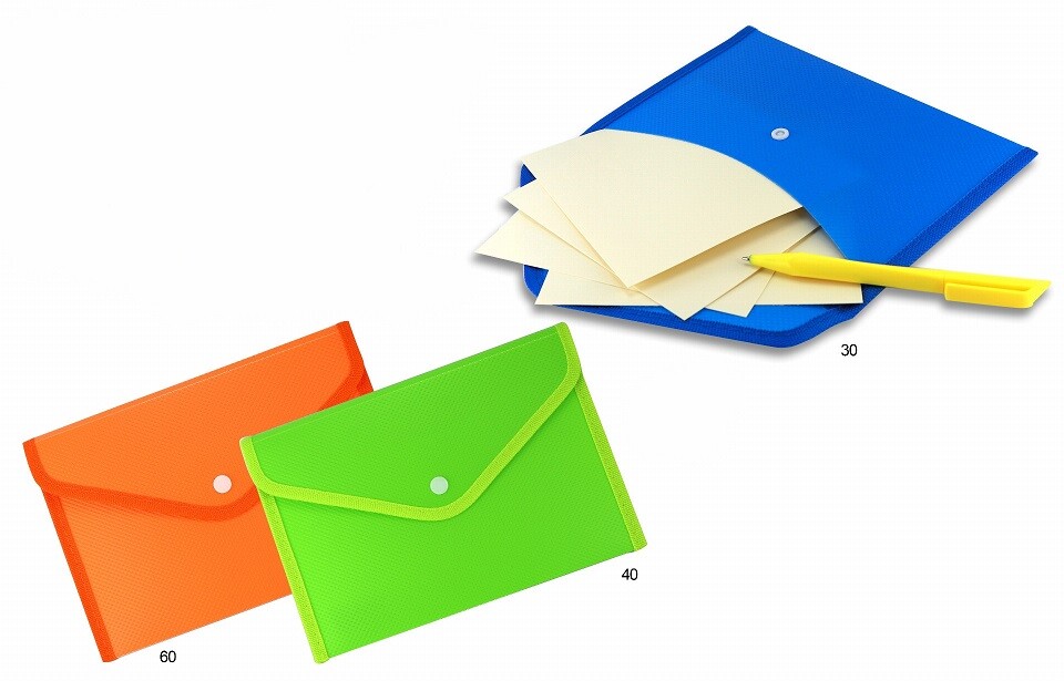 Pevná plastová složka A5 na dokumenty s textilním lemem a drukem.