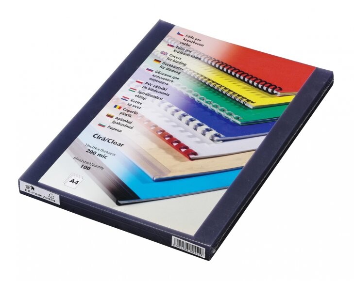 Pro jedinečný vzhled, mechanickou ochranu a nezbytnou pevnost fólie PRESTIGE čirá - PVC fólie, optimální jako přední strana vazby. 1 bal.=100 ks, 200mic