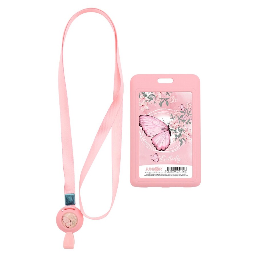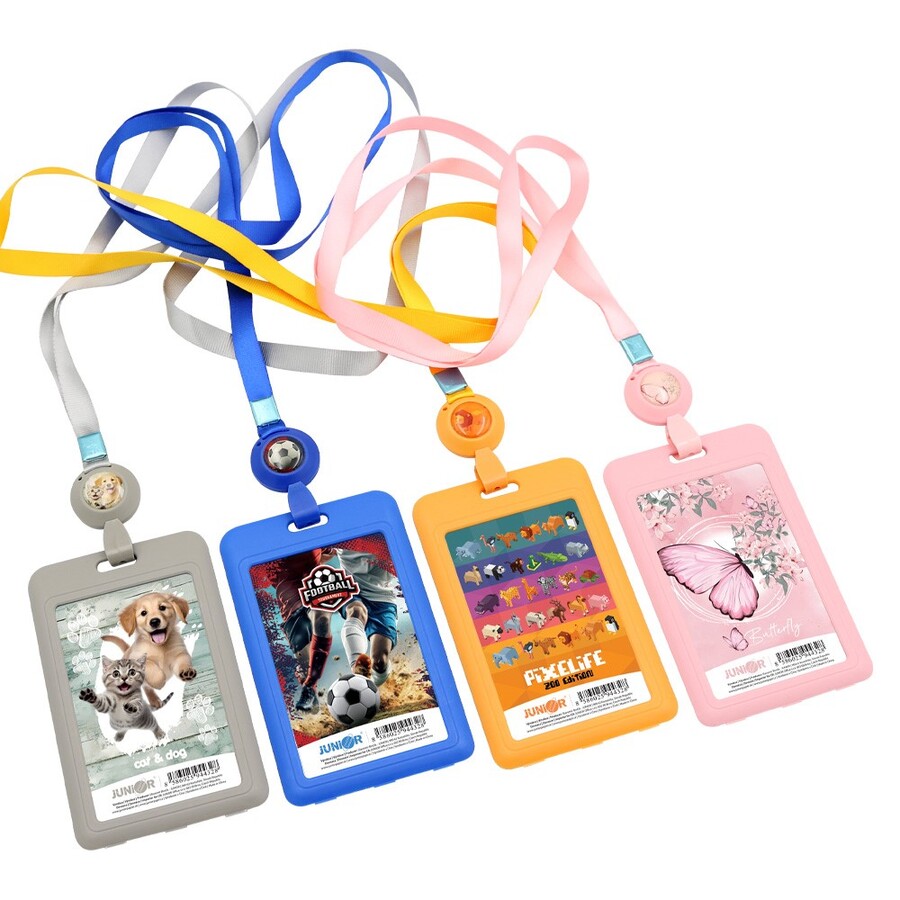 Pouzdro na identifikační kartu se stuhou na krk s natahovacím kolečkem.