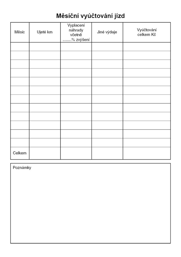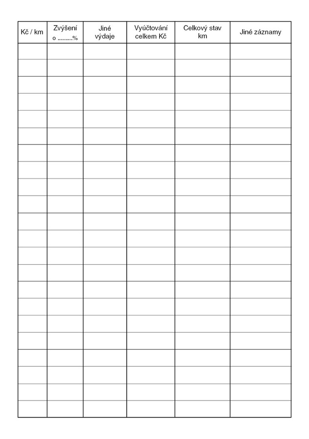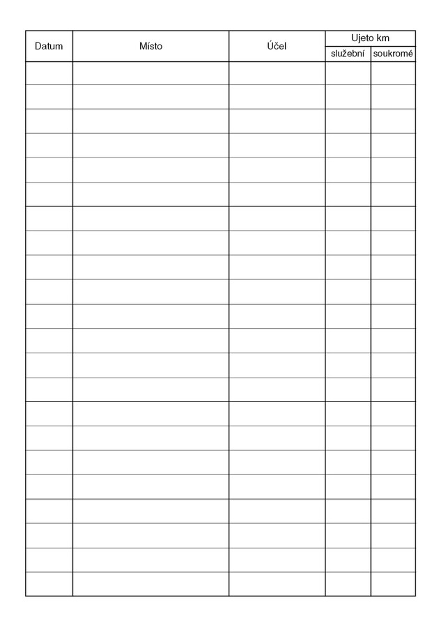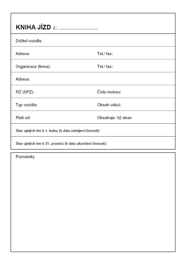 Kniha jízd, 52 stran, formát A5, ekologický tiskopis.