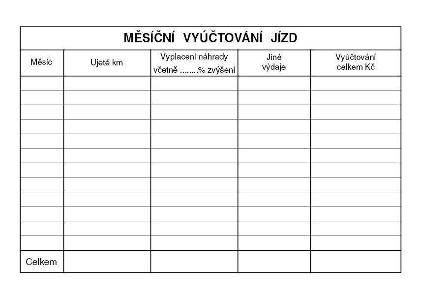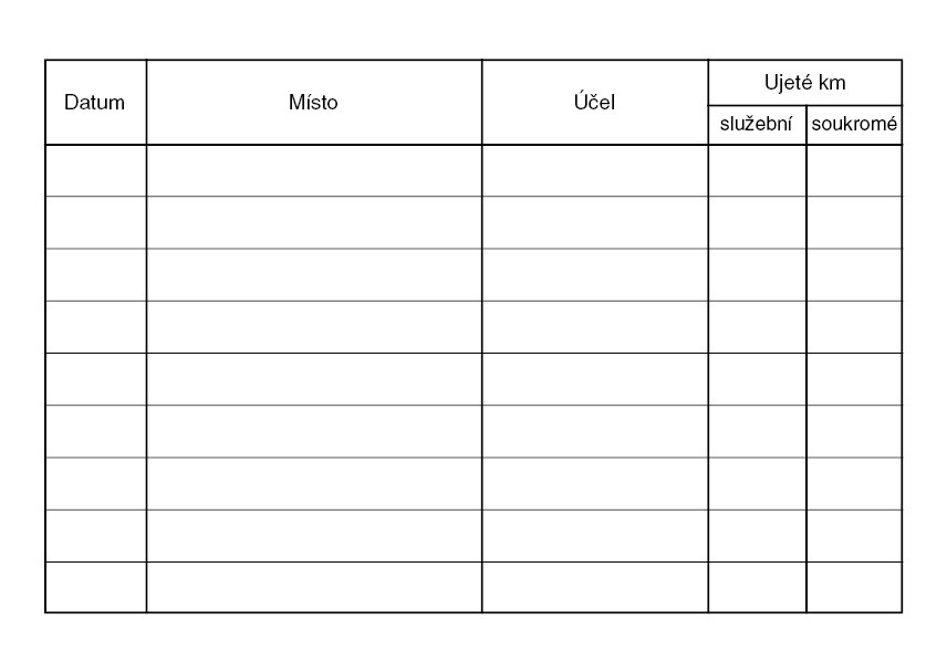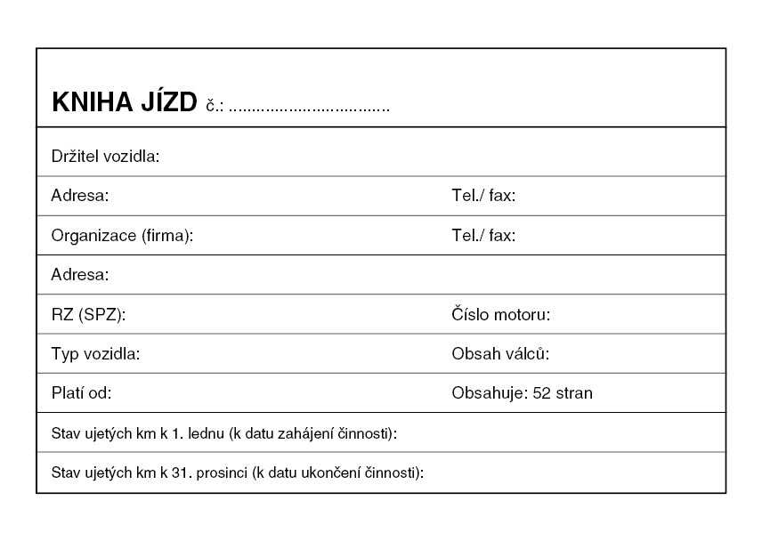 Kniha jízd, 52 stran, formát A6, ekologický tiskopis.