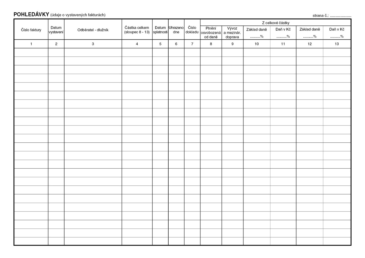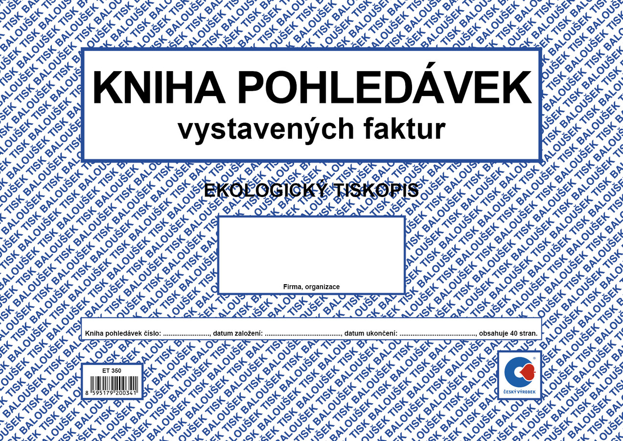 Kniha pohledávek (vystavených faktur), 40 stran, formát A4, ekologický tiskopis.