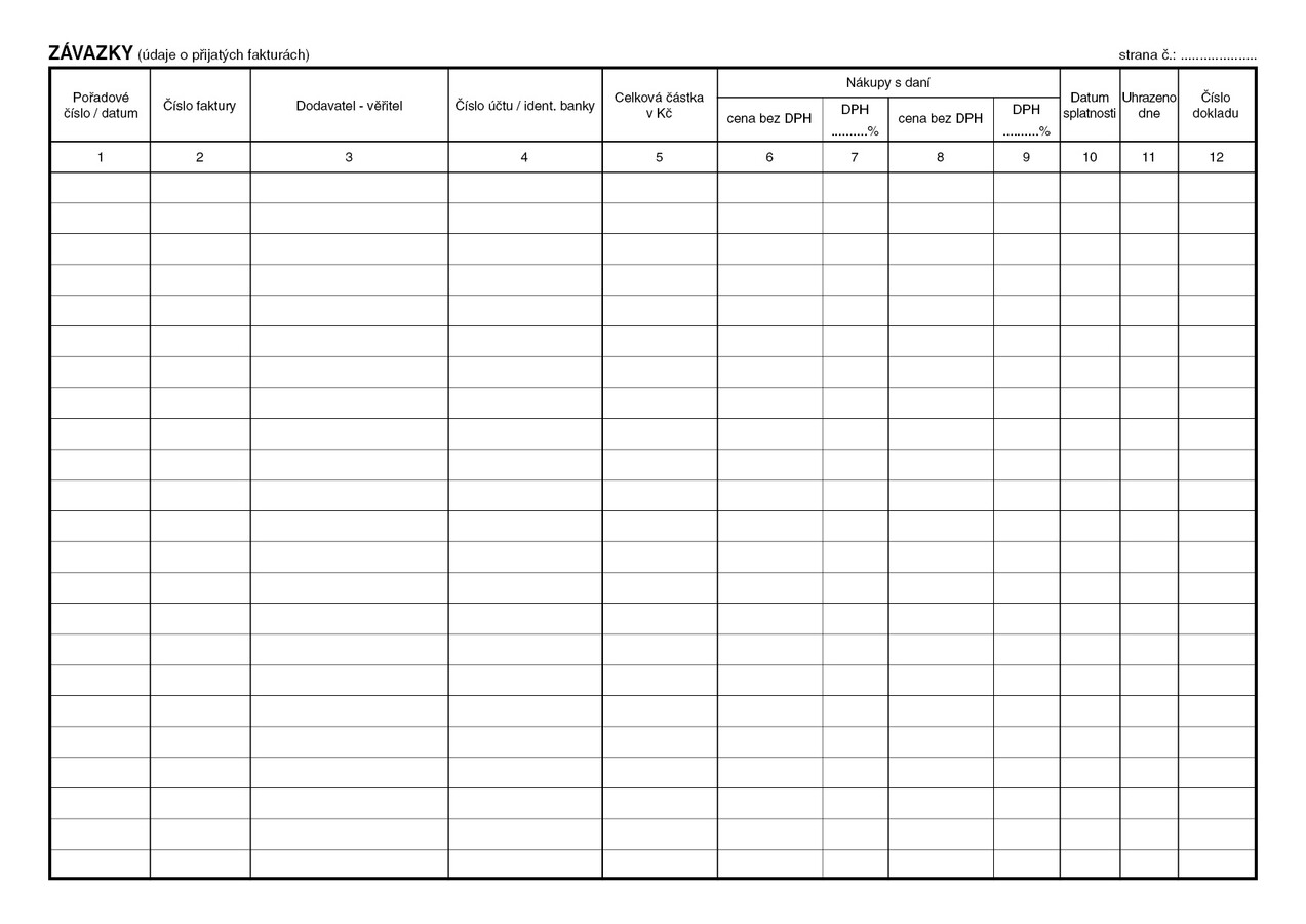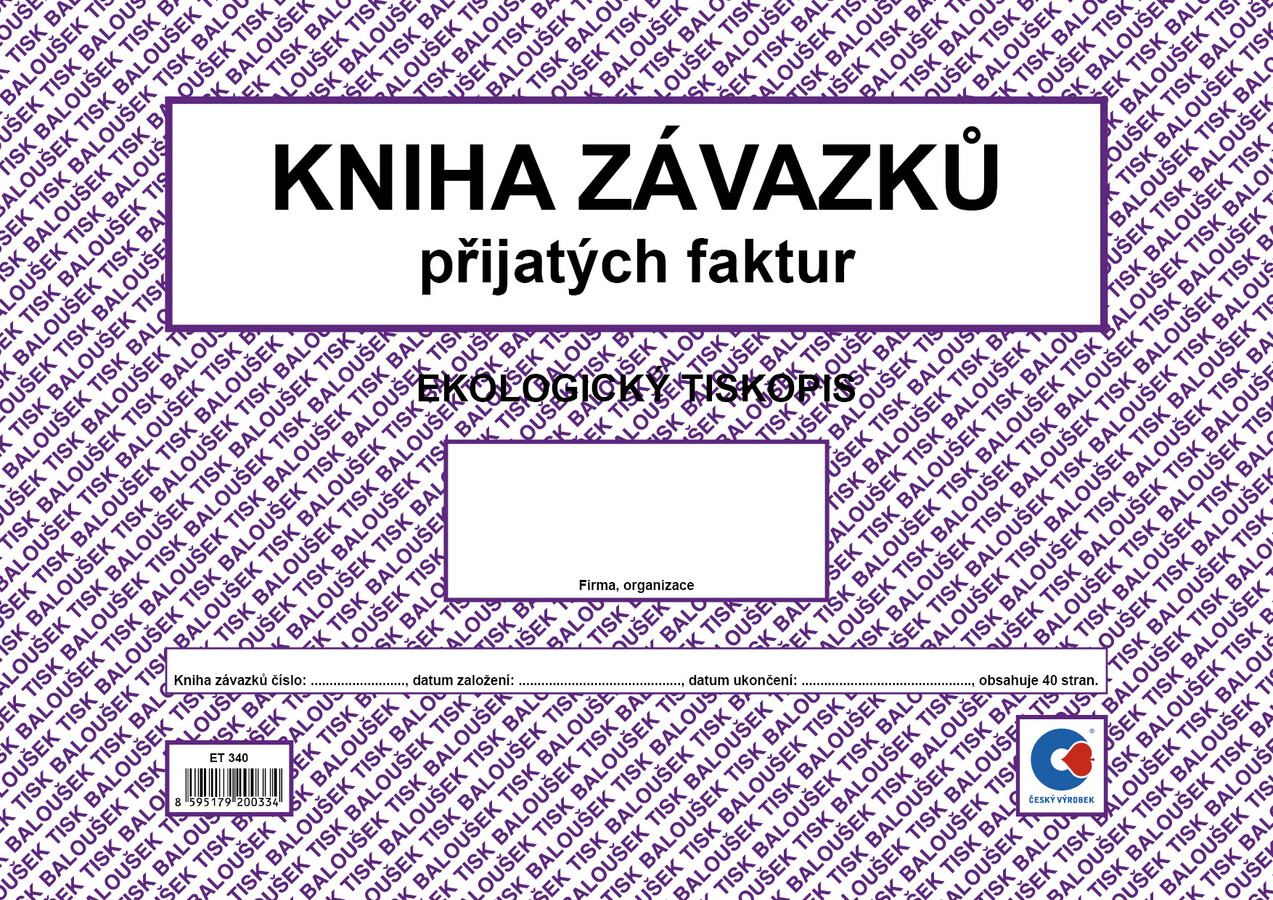 Kniha závazků (přijatých faktur), 40 stran, formát A4, ekologický tiskopis.
