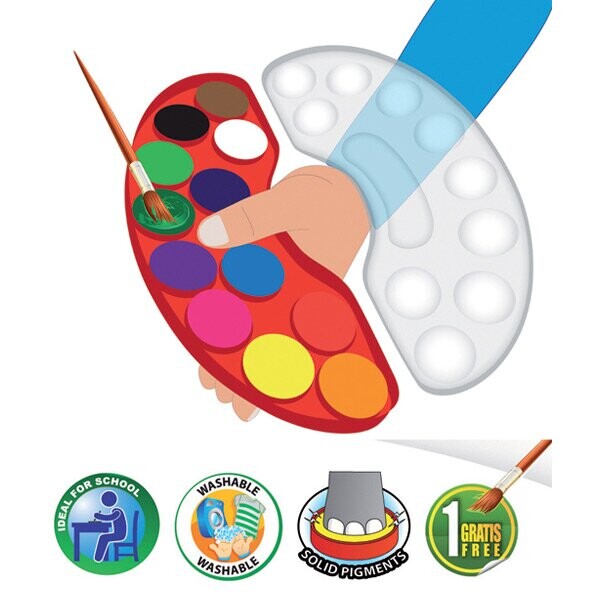 - unikátní design – obal lze uchopit jako malířskou paletu a plocha víčka umožňuje míchání jednotlivých barev
