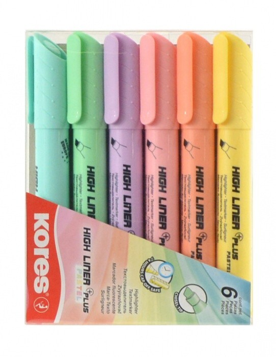KORES Zvýrazňovače HIGH LINER PASTEL PLUS sada 6 barev