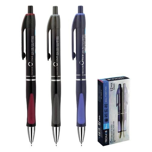 Oblíbené kuličkové pero s plastovým tělem a ergonomicky tvarovaným gumovým úchopem. Vyměnitelná náplň modré barvy, šířka stopy 0,5 mm.