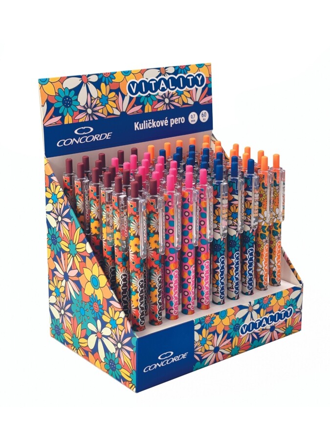 Elegantní kuličkové pero v atraktivním designu s protiskluzovým povrchem z lehce pogumovaného plastu. Hrot o šířce 0,7 mm. Stiskací mechanismus pro pohodlné psaní. Dodáváno v mixu 4 pestrobarevných kombinací. Náhradní náplň Extra Fine, MODRÁ.