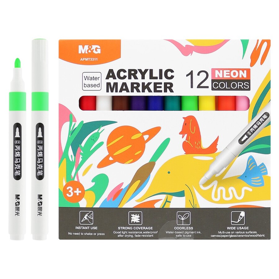 M&G Akrylové popisovače 12 barev NEON