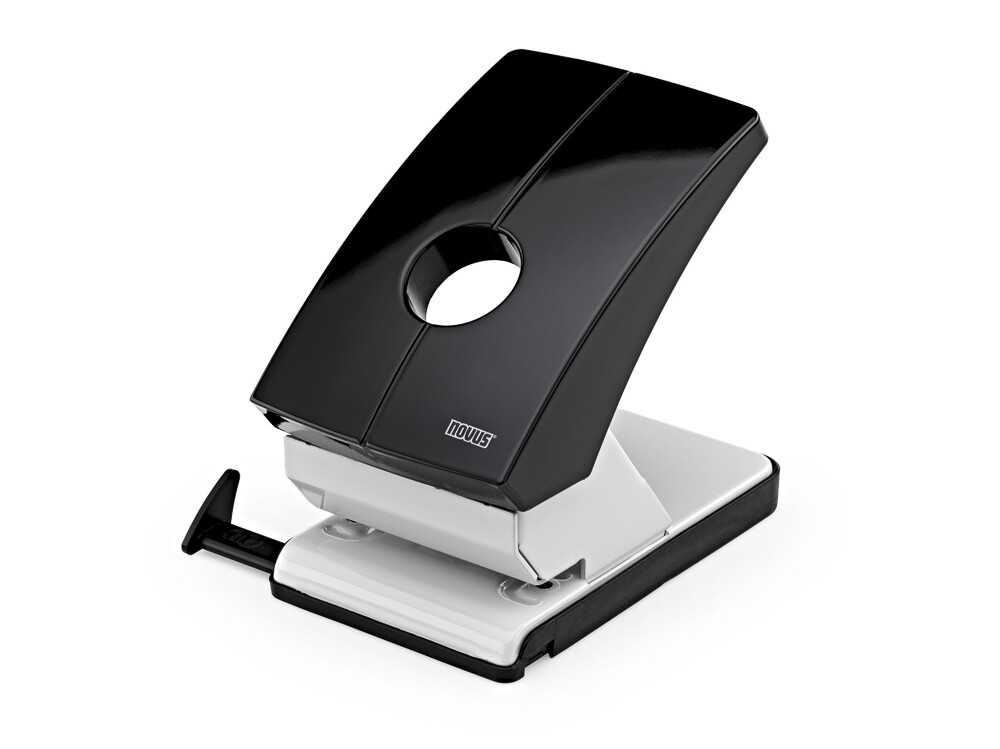 Velkokapacitní bloková děrovačka pro profesionální použití. Celokovová s plastovým opláštěním. Aretace horního dílu pro úsporu místa při ukládání. Potištěné posuvné pravítko pro snadné formátování.