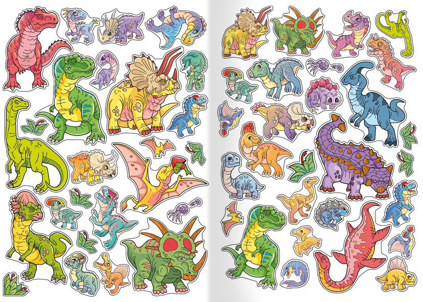 Krásné omalovánky A4 s barevnými předlohami pro děti. Omalovánky mají sadu oblíbených samolepek.