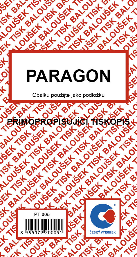 Paragon 50 listů, 80x150mm, přímopropisující tiskopis.