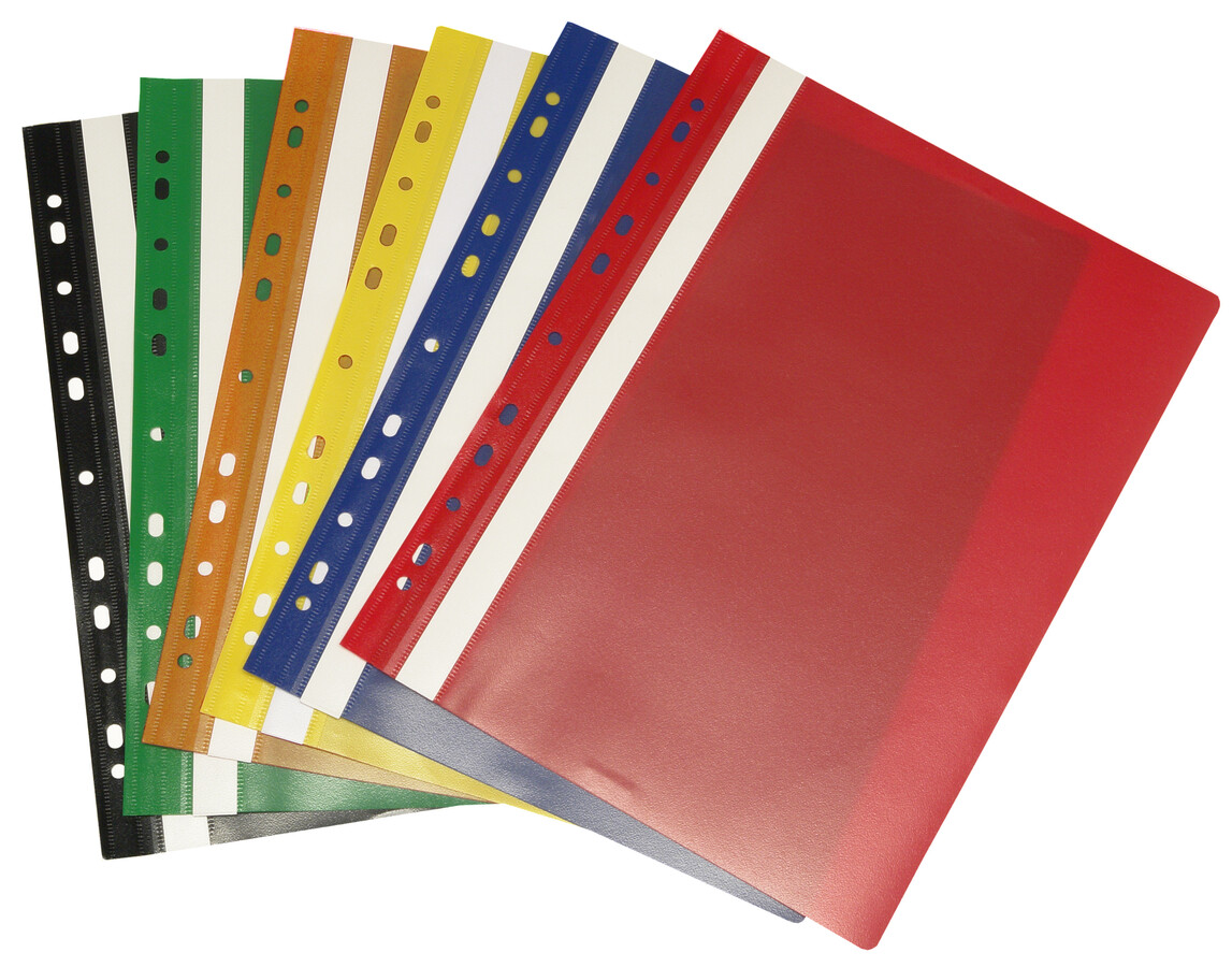 | Desky k založení děrovaných dokumentů formátu A4. Vnější lišta s euroděrováním umožňuje zavěšení do pákového nebo kroužkového pořadače. Vyroben z ekologicky šetrného polypropylenu - přední strana transparentní a měkká zadní strana barevná. Kapacita: 2 cm (cca. 200 listů). Oboustranný popisovatelný štítek. Rozměry: 237x310 mm. |