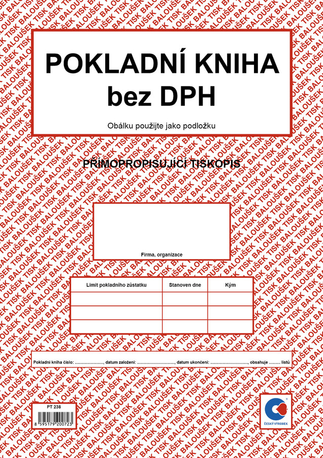 Pokladní kniha bez DPH A4 PT238