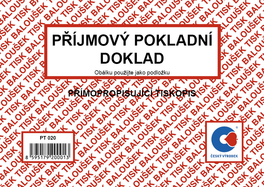 Příjmový pokladní doklad 50 listů, formát A6, přímopropisující tiskopis.