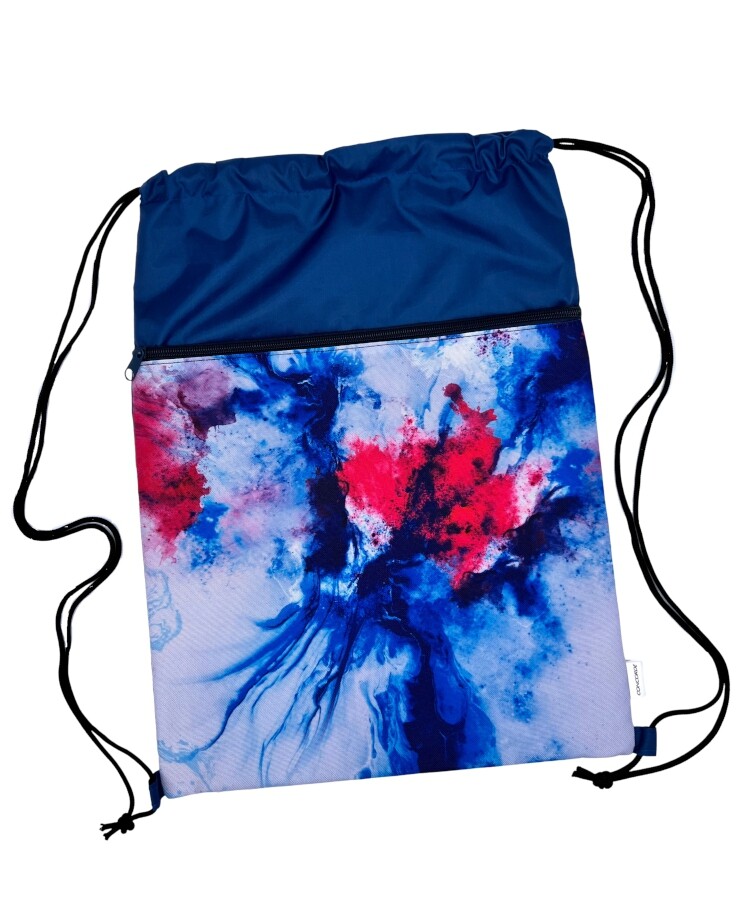 Sáček na obuv či jiné drobnosti pro volnočasové aktivity nebo jako lehký batoh do města. Uzavíratelný pomocí ramenních šňůrek, které zároveň umožňují nošení na zádech. Sáček je vyroben z omyvatelného materiálu v abstraktivním designu. Součástí sáčku je praktická kapsička na zip. Výhodou sáčku je velmi nízká hmotnost. Rozměr 32,5x1x44cm.