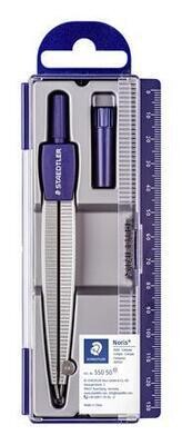 přesné kovové kružítko s vroubkovaným nástavcem pro přesné a pravidelné rýsování délka: 128 mm jehla s bezpečným tupým hrotem náhradní tuha závěsné plastové pouzdro s pravítkem