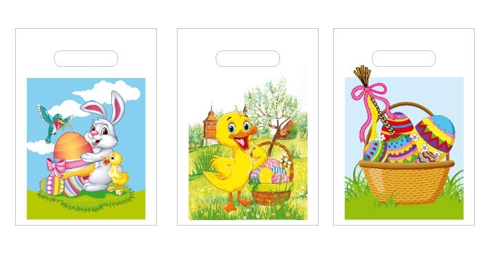 Taška PP 25 x 35 cm s průhmatem, bílá, potisk mix motivů.