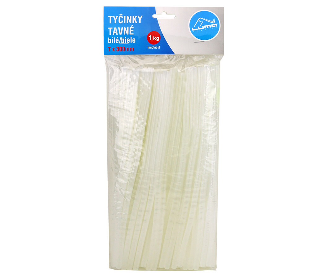 Náplně do tavné pistole.Délka: 300mm Průměr: 7mm Barva: bilá Množství: 1kg/cca 90ks