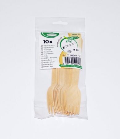 Vidličky jsou ekologické, odolné. Dřevěné vidličky mají délku 160 mm, baleno po 10 kusech.