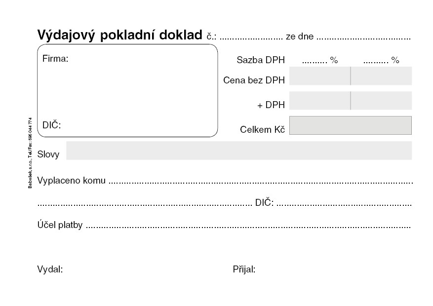 Výdajový pokladní doklad 50 listů, formát A6, přímopropisující tiskopis.