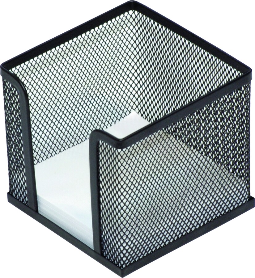 Praktický zásobník na poznámkové lístky v černém kovovém provedení, perforovaný. Snadná údržba. Rozměry: 95 x 80 x 95 mm.